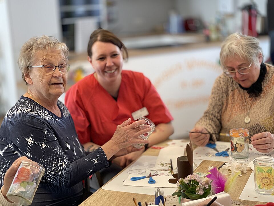 In der Tagespflege verbringen Gäste einen strukturierten und aktiven Tag in gemütlichen Gemeinschaftsräumen. Das Programm reicht von körperlichen Aktivitäten über Basteln bis hin zu Ausflügen und gemeinsamen Mahlzeiten. Ein Fahrdienst ist auf Wunsch verfügbar. Die Tagespflege entlastet pflegende Angehörige und gibt diesen neue Freiräume.